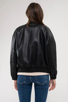 Introducing our sleek and stylish faux leather bomber jacket – a timeless piece that combines edgy design with classic comfort. It's an effortless way to add a dose of cool to any outfit, turning heads with its polished yet daring vibe.