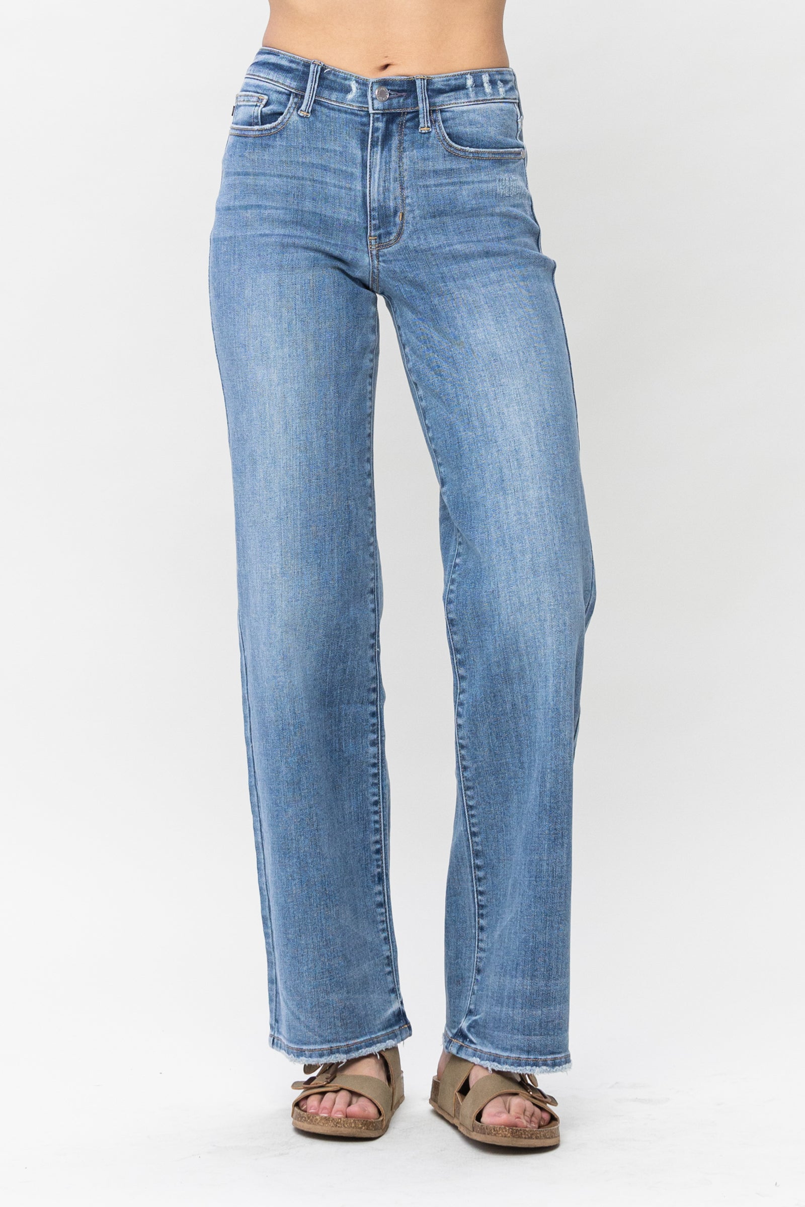 Judy Blue Mid Rise Vintage Wash Wide Leg