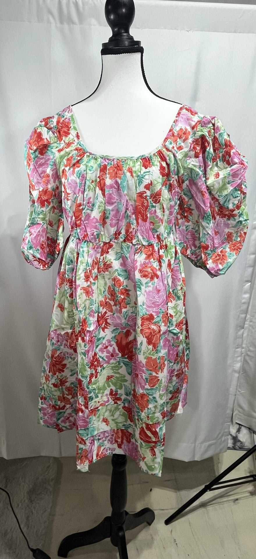 Looking for a fun mini dress? This floral pattern dress with puffy sleeves is perfect for your vacation get away or brunch. It is a mini dress in length but this one will have you feeling confident and ready for a fun day!