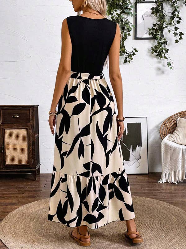 Twirl into summer with this versatile maxi dress featuring a flattering tie waist and eye-catching floral skirt print. The comfortable tank top design keeps you cool while looking fabulous. Perfect for dancing at summer weddings or sipping mimosas at brunch - this dress effortlessly transitions from casual to elegant with just a change of accessories!
