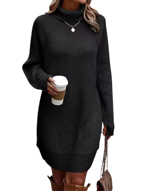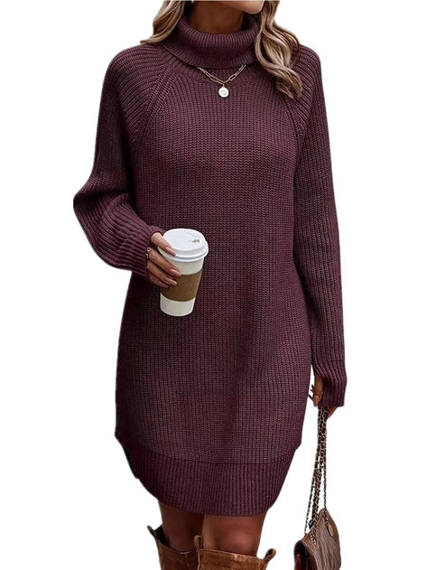 Stay warm and cozy in our High Neck Sweater Dress! With long sleeves and a high neck design, this dress is perfect for chilly fall and winter days. Its casual style makes it versatile and easy to dress up or down. Stay stylish and comfortable all season long!