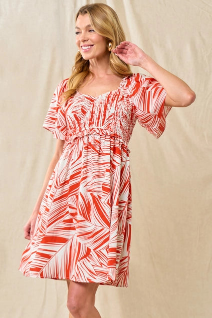 Get ready to turn heads in our Smocked Bodice Floral Dress! Perfect for a day at the beach or a romantic dinner, this dress features oversized balloon flowy sleeves and an A-line silhouette that exudes confidence and chicness. Enhance your style and feel effortlessly beautiful in this red floral dress.