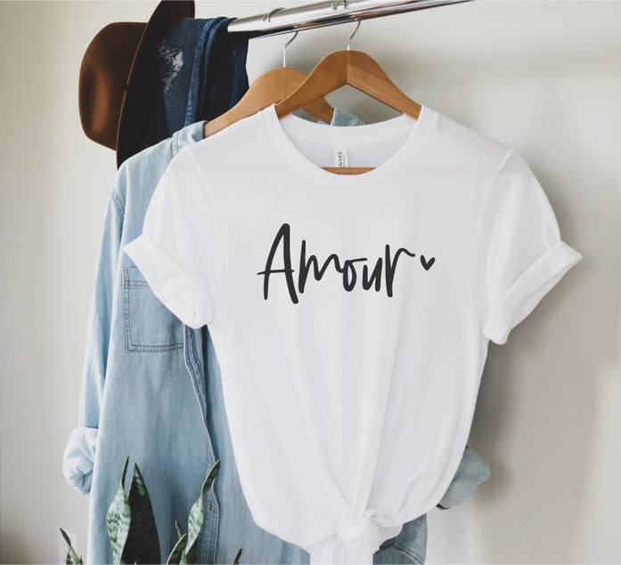 Fall in love with fashion all over again with our latest addition to the Blue Taylor collection – the "Amour" Tee! Just in time for Valentine's Day, this chic and minimalist t-shirt is the perfect way to celebrate love, or simply add a touch of romance to your everyday style.