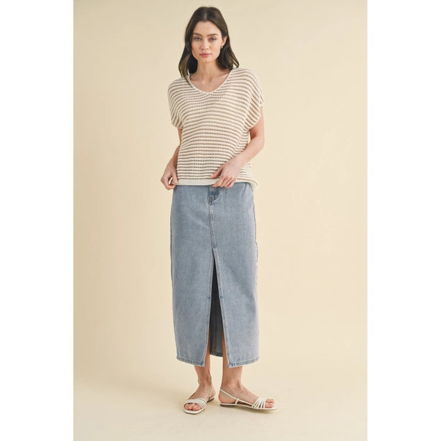Experience a piece of paradise with our Coastal Day Sweater. With its beachy vibes and semi-sheer fabric, this knitted top will have you feeling relaxed and stylish. The dolman sleeves and side slits add a touch of elegance, making it perfect for any occasion. Embrace the coastal lifestyle with this must-have sweater!
