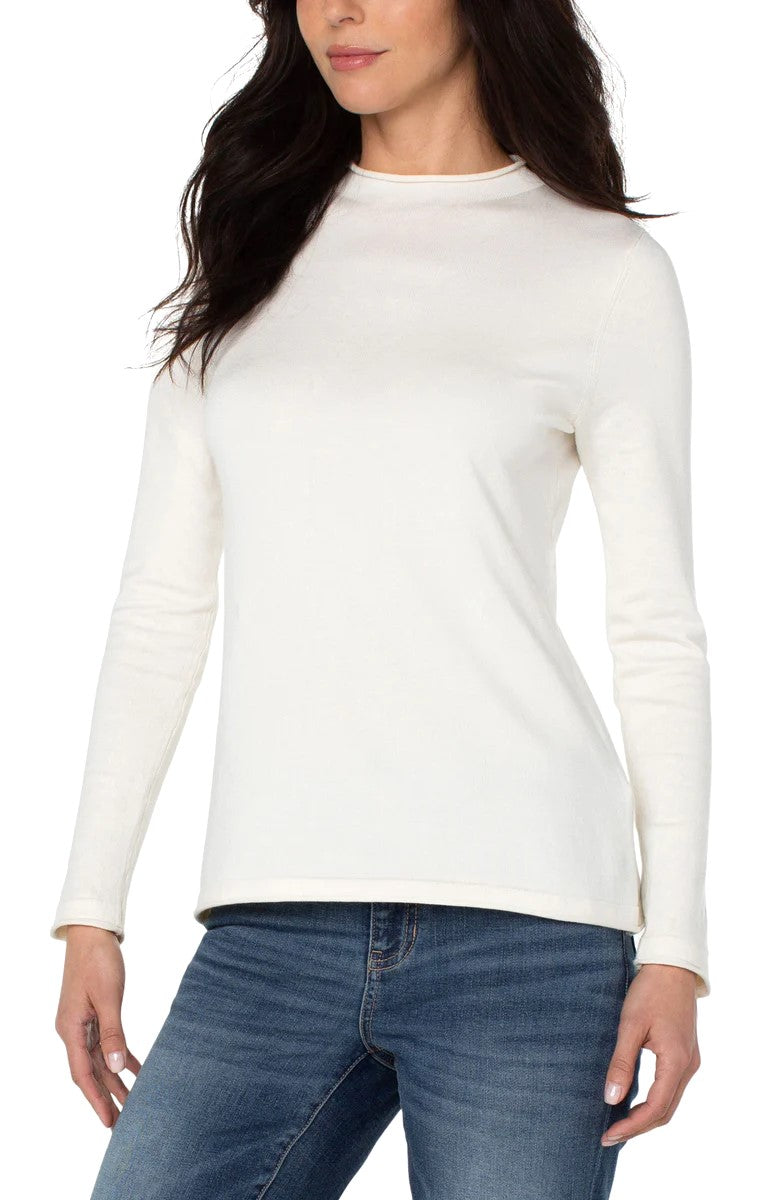 Liverpool Mock Neck Rolled Hem Long Sleeve Sweater
