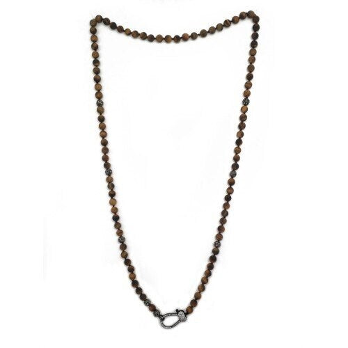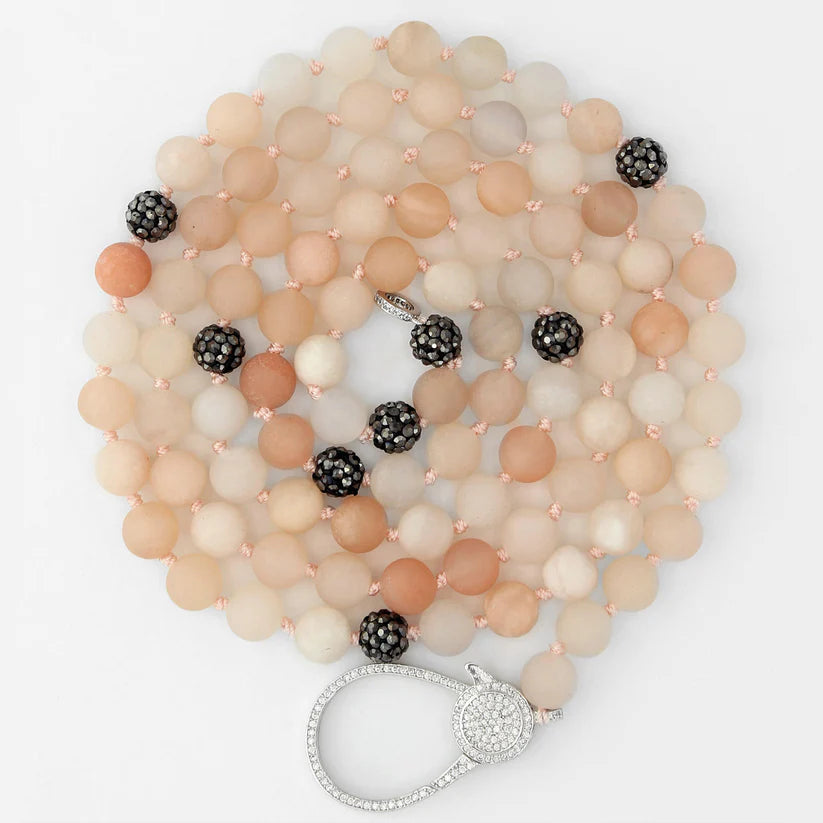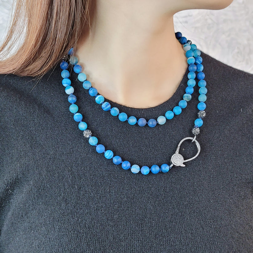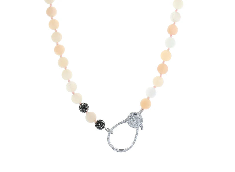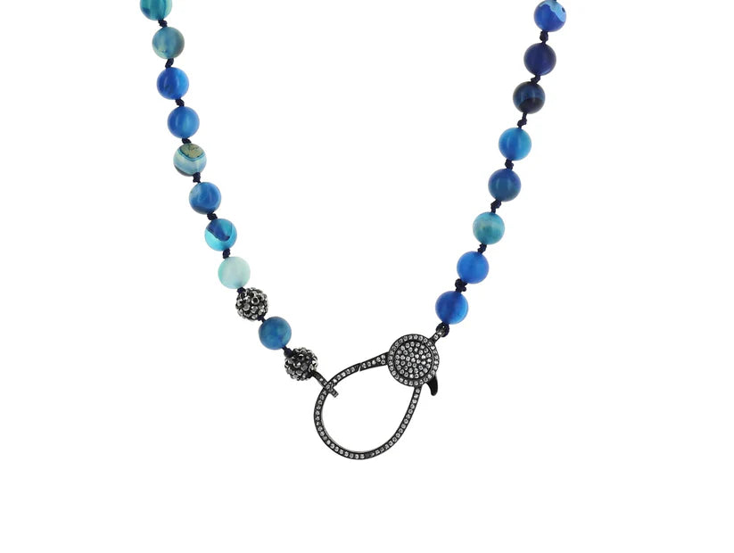 Experience the beauty of summer with our beaded necklace! Made with matte agate and hematite spheres, it features a large rhodium pave clasp that adds a touch of elegance. Wear it long or short and add personal pendants for a unique look. Versatile at 36" long, this necklace is a must-have!