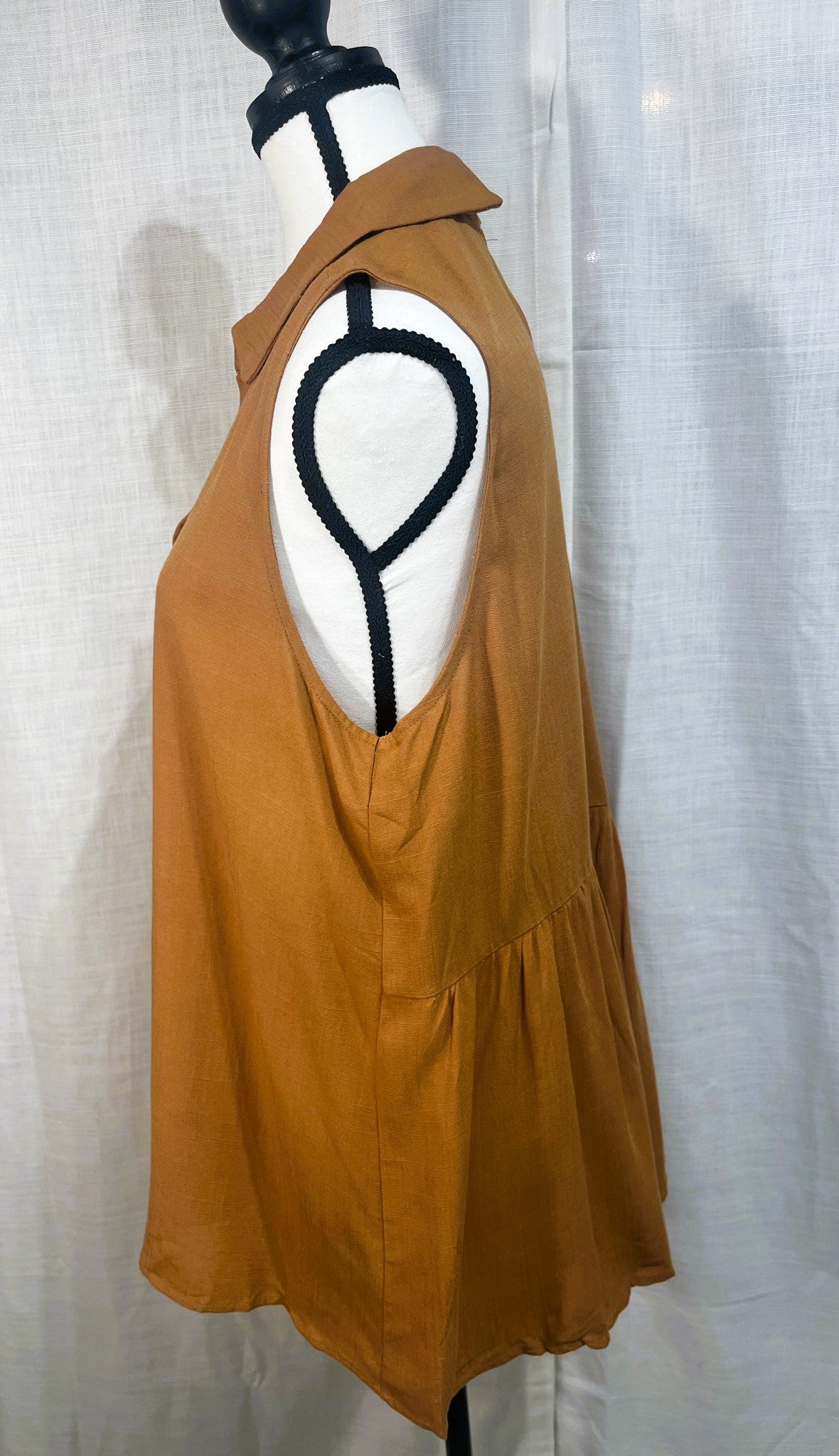 This lightweight collared tank top is a classic. Simple in the front with button details down the back. Pair this shirt with white or tan shorts for a classic outfit.