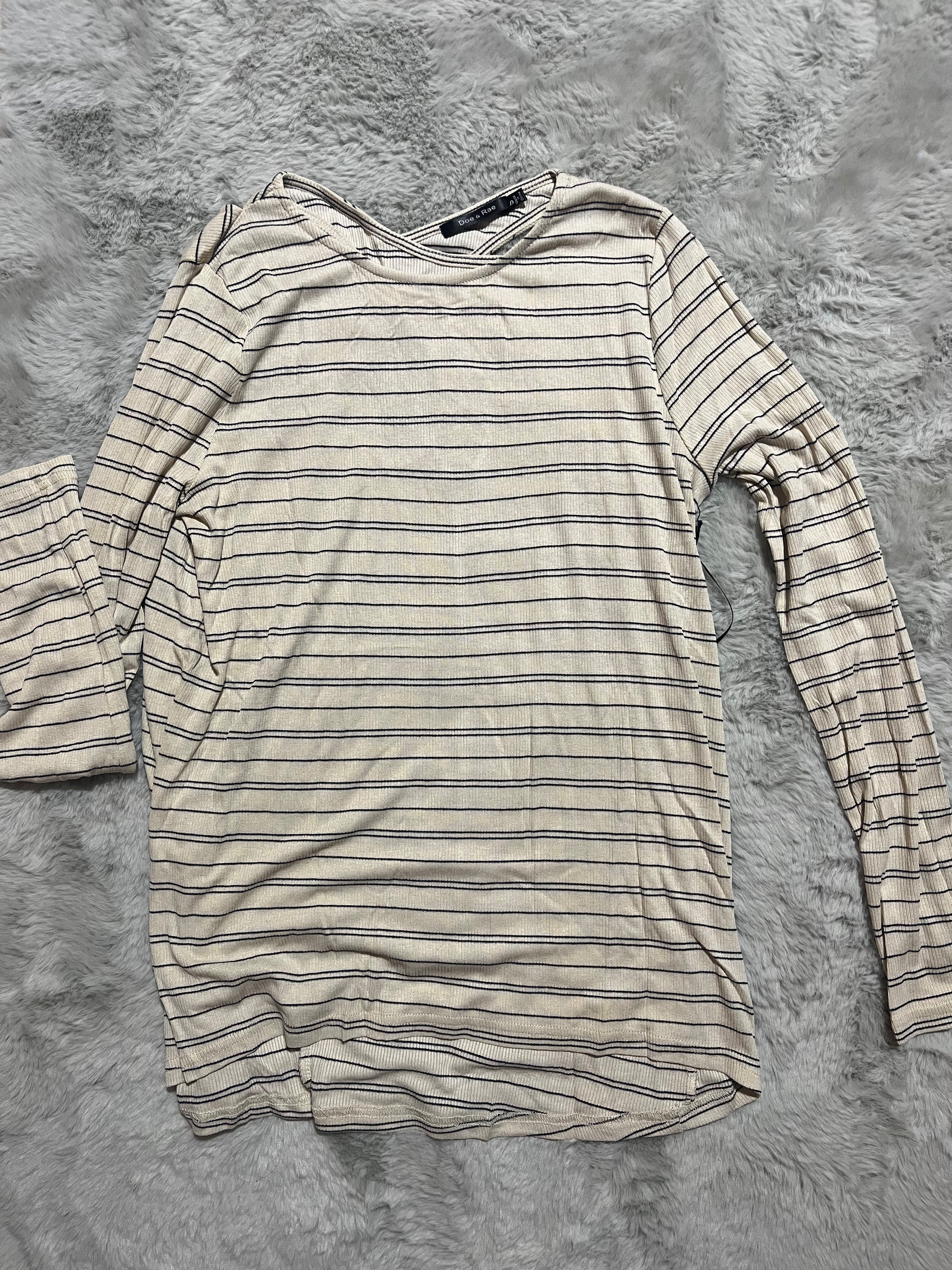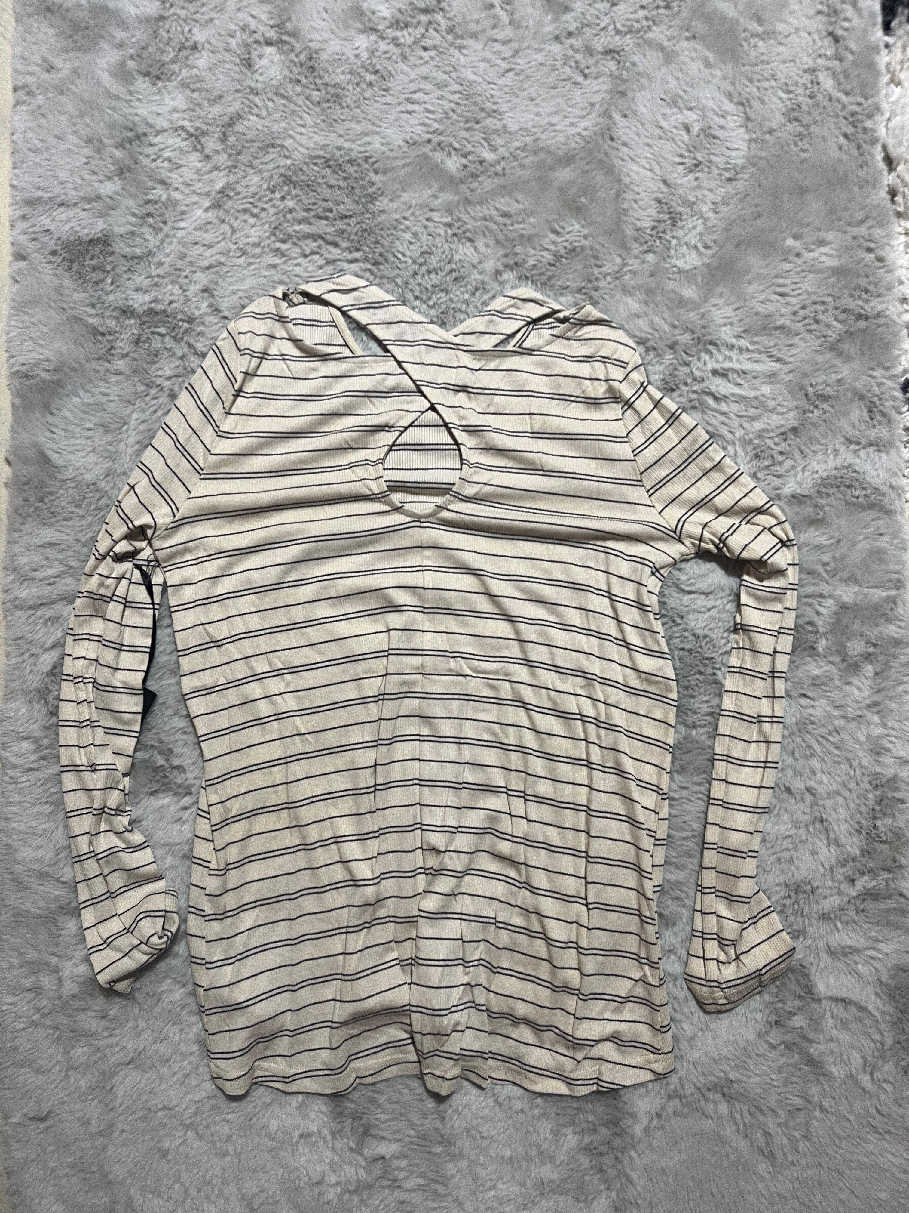 This long sleeve ribbed shirt has stripe pattern and crisscross detail on the back. It is perfect for a casual outfit or lounge wear.
