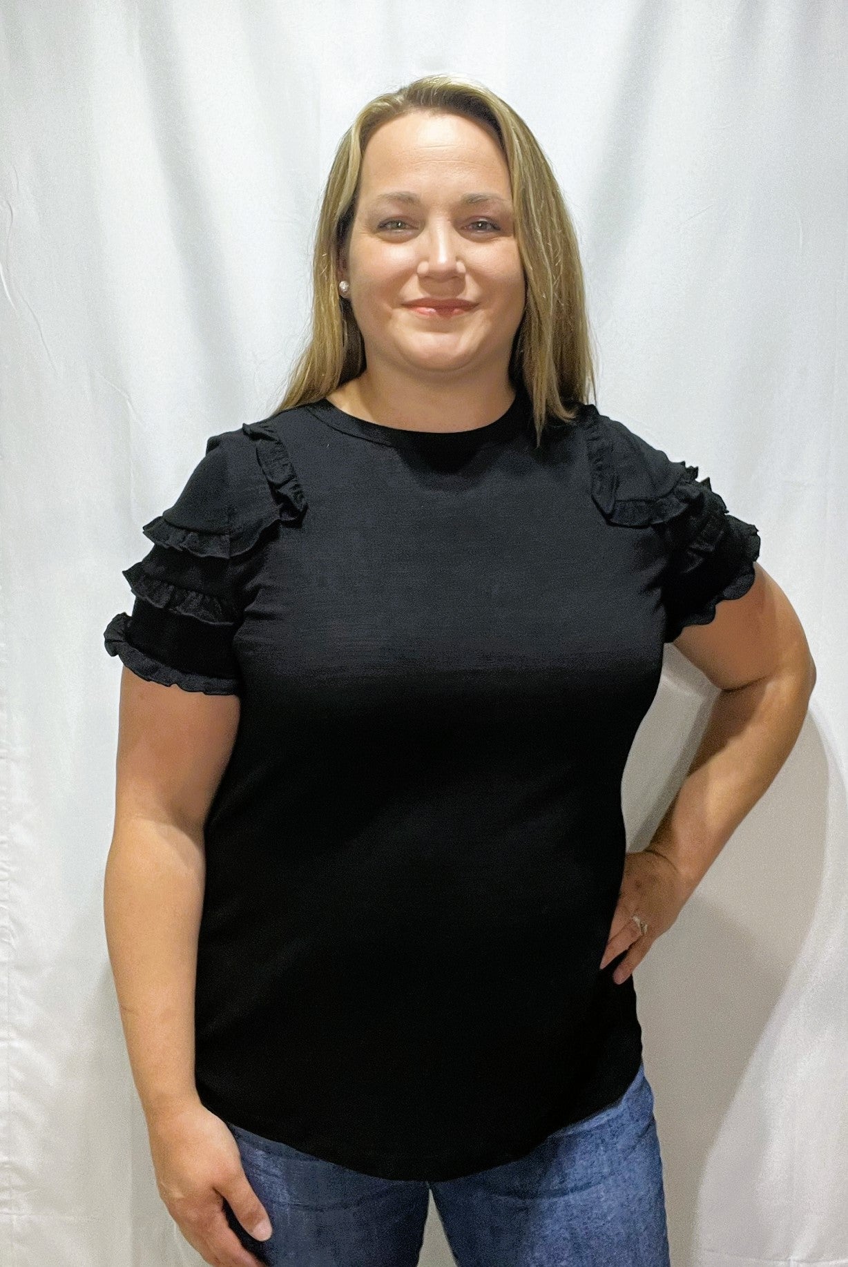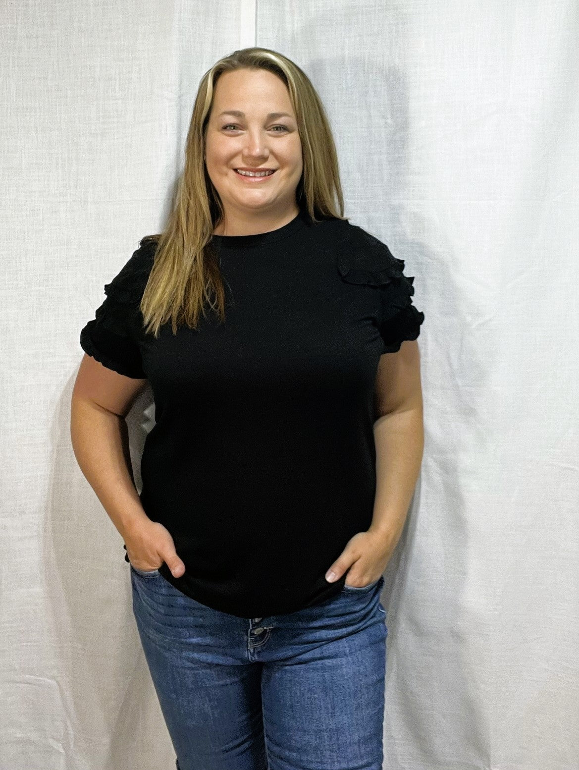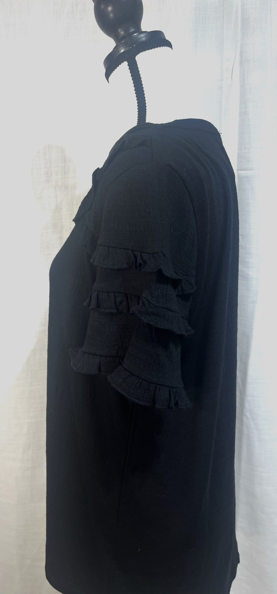 This ruffled sleeve shirt is soft and lightweight making it a perfect summer shirt for any outing.
