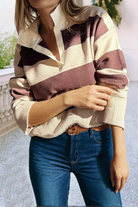 Elevate your everyday style with The Oxford Stripe Sweater, a modern take on classic knitwear. Featuring bold, chunky colorblock stripes and a refined polo collar, this sweater blends timeless charm with on-trend appeal. The soft knit fabric offers a comfortable, flattering drape that’s perfect for cool-weather layering — from casual outings to elevated seasonal looks.