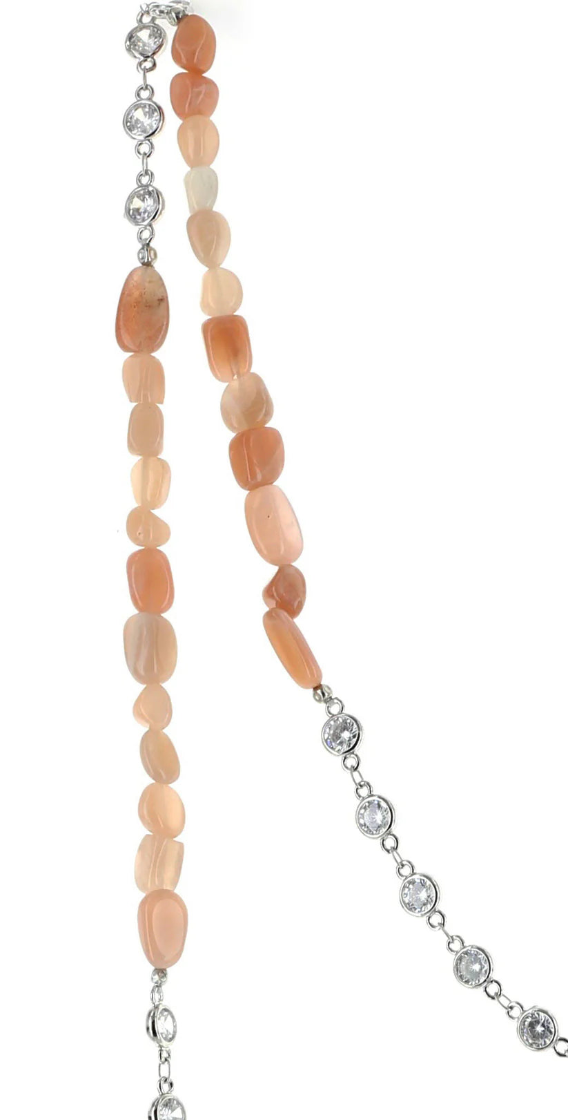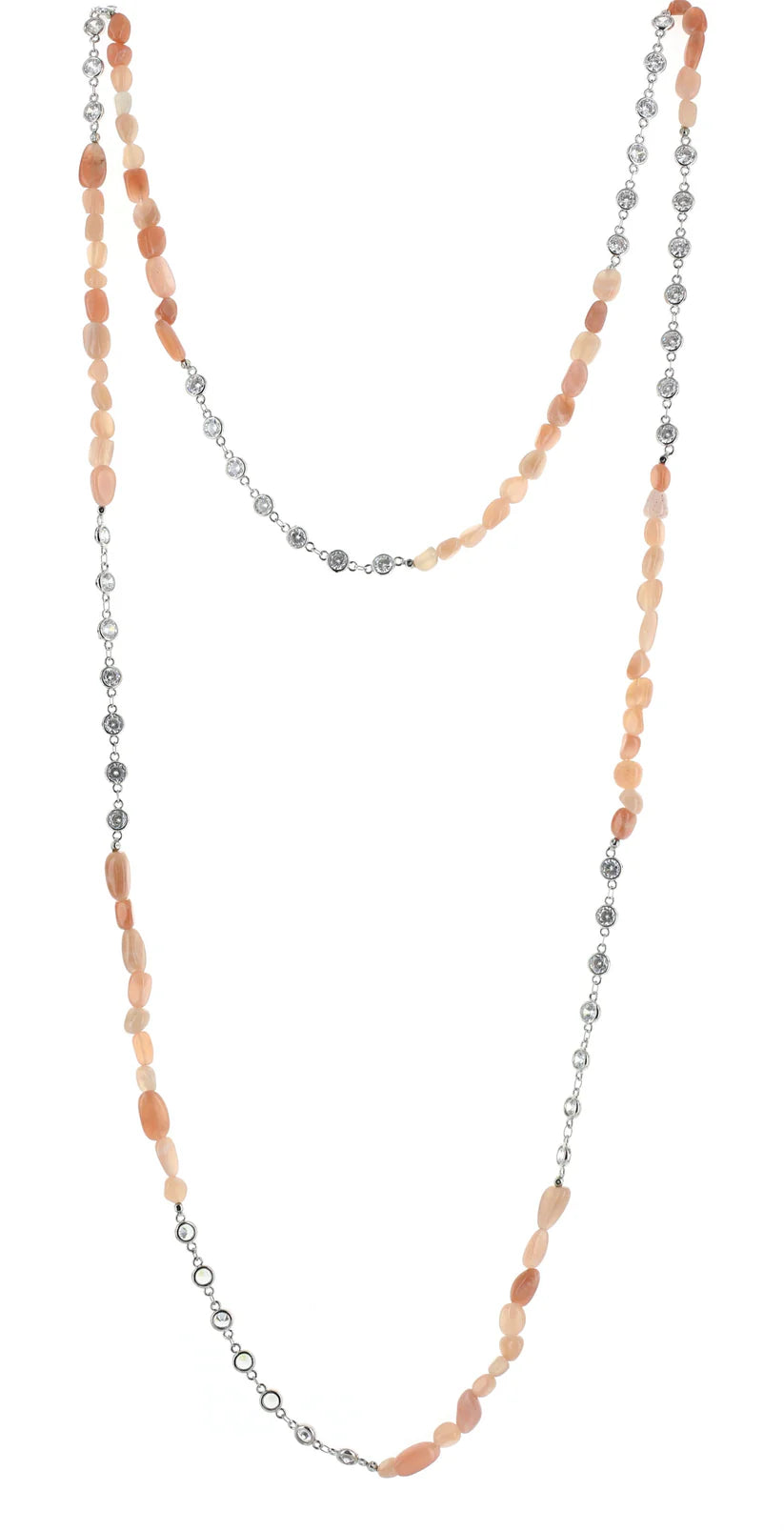 Elevate your summer style with our All-Day Coastal Necklace! This 60" stunner features double-sided simulated white diamonds and rose quartz beads, secured with a lobster clasp. Perfect for the beach or a night out, this necklace adds a touch of coastal charm to any outfit.