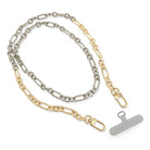 This rhodium plated lightweight alt chain phone chain is the perfect accessory for any occasion. Its sleek design features gold plated ends and a double clasp, allowing you to wear it as a phone chain, necklace, or purse chain. Crafted with quality materials and attention to detail, this chain is sure to impress.