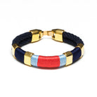 Enhance your seafaring elegance with the Newbury Nautical Bracelet. Choose between meticulously hand-dyed navy blue cotton rope embellished with gold plated clasp and spacer beads, or refined white cotton rope complemented by a gold plated clasp. This distinguished accessory seamlessly integrates with your curated wardrobe for any occasion.