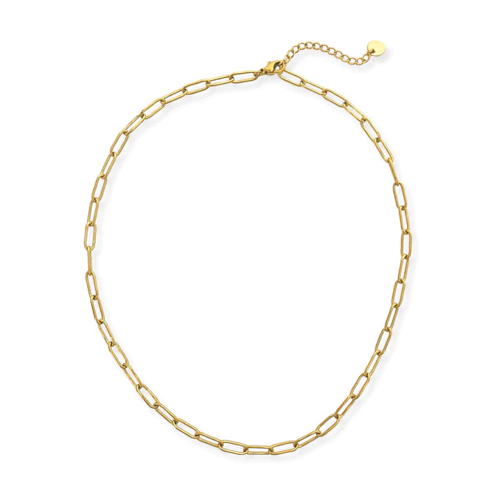 A luxurious Water Resistant necklace crafted with a stainless steel paperclip chain for a unique and sophisticated look. Experience both fashion and practicality with this elegant necklace. Upgrade your wardrobe with this sophisticated and exclusive piece.