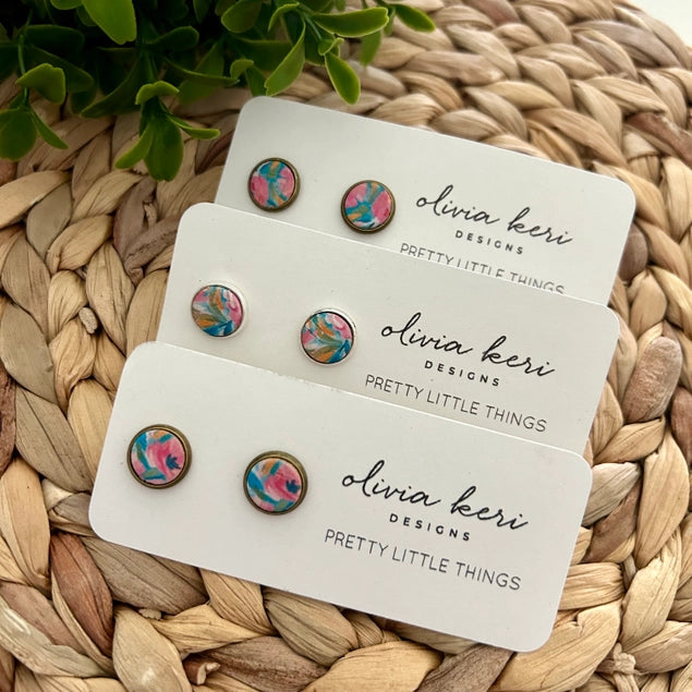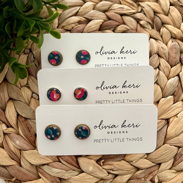 Introducing our Pretty Little Things Studs! Made from genuine cork on leather, these stylish stud earrings are not only fashionable but also nickel-free for sensitive ears. Choose from our elegant evening floral design or our vibrant summer bliss pattern. Elevate any outfit with these gorgeous studs!