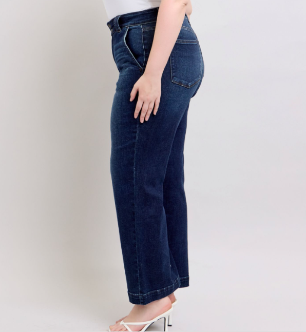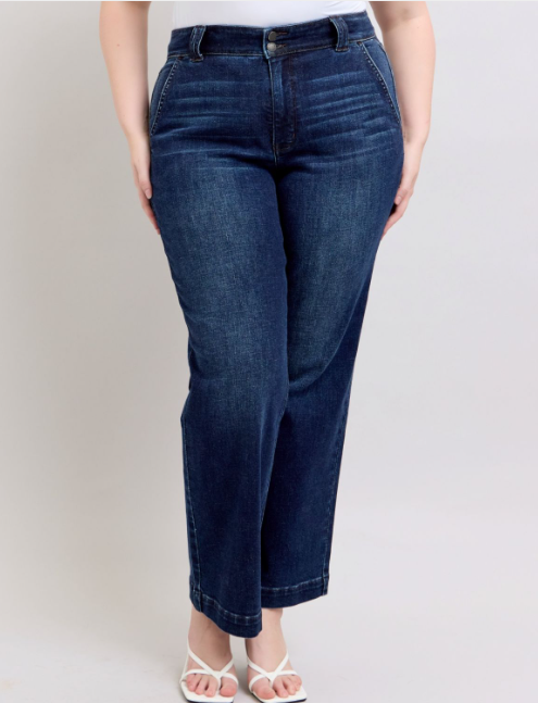 Introducing our Judy Blue High Waist Wide Leg jeans - available in sizes 14W-24W! With a flattering high waist and wide leg, these jeans are perfect for any body type. Plus, the stretch fabric ensures a comfortable fit. Upgrade your denim game now!