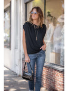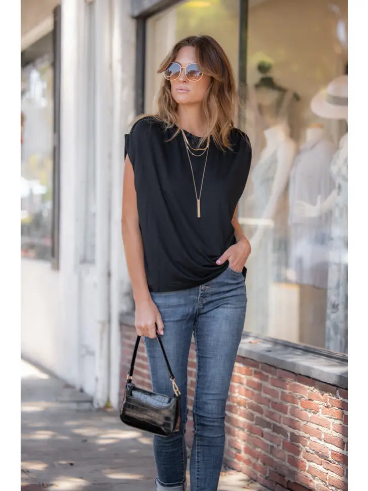 Give your everyday look a cool upgrade with this super-soft tee. Whether you're going out, to the mall, the beach (or nowhere at all!), this tee is the perfect go-to casual ensemble. With a loose fit and ruched shoulder detail, this shirt is sure to keep you comfortable as you take on the day.