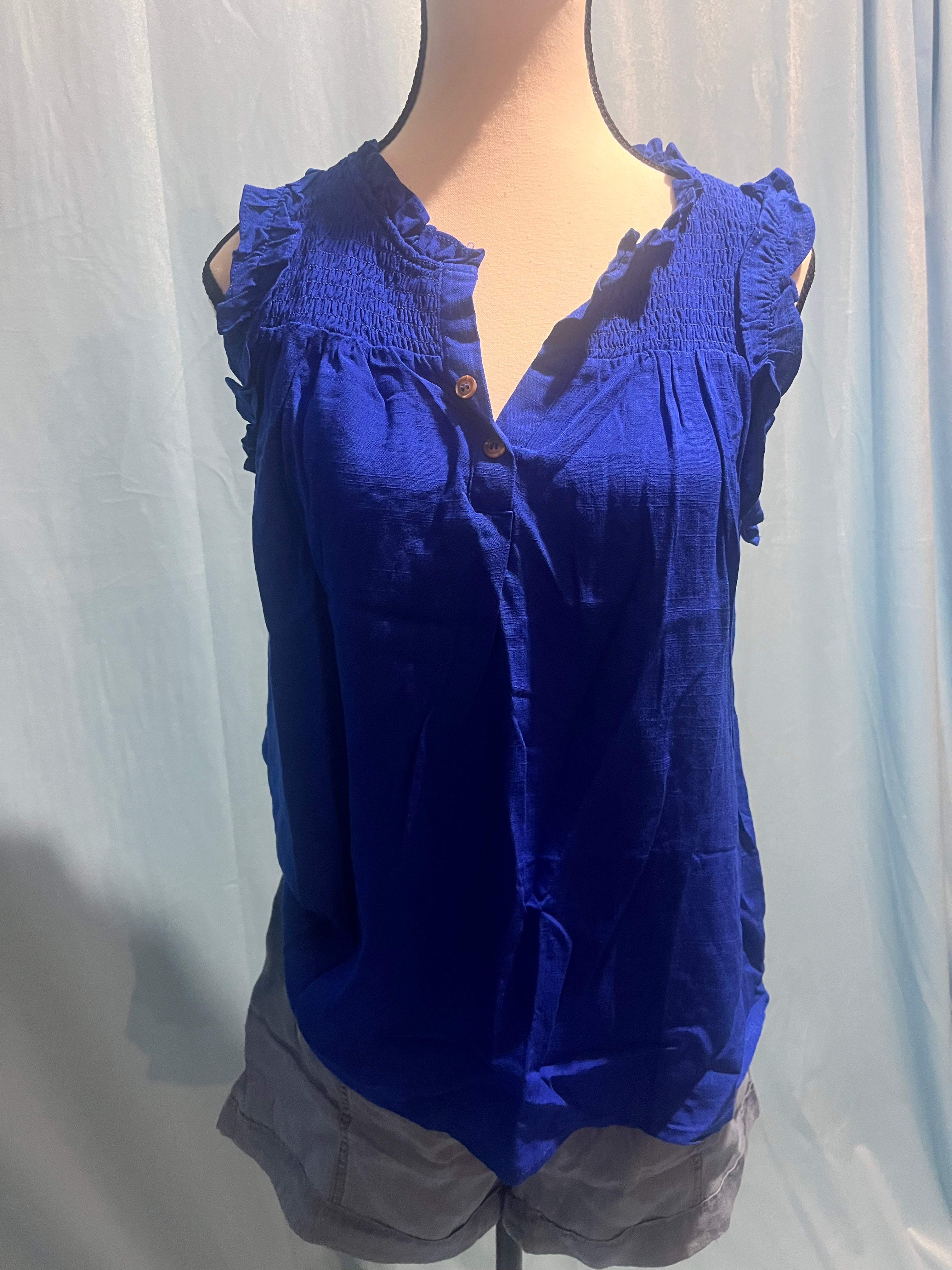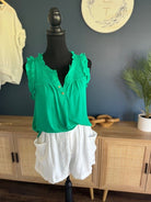 Unleash your playful side with our Pretty Tank! This sleeveless top is adorned with ruffle details, adding a touch of femininity. Made with soft cotton, it's perfect for a day at the beach or a casual outing. It's a must-have addition to your summer wardrobe!