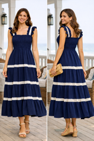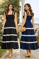 The soft ruffle straps add a romantic touch while the lightweight, flowy fabric moves beautifully with every step. Perfect for brunch, coastal vacations, winery outings, or summer gatherings, this dress is as versatile as it is beautiful.