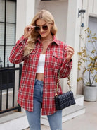 The Carly Plaid Shirt is your go-to fall essential, featuring a classic plaid pattern and handy pockets. Button it up for a crisp look or wear it open as a cozy layering piece. Perfect for crisp autumn days, this playful shirt blends timeless style with everyday comfort.