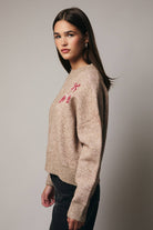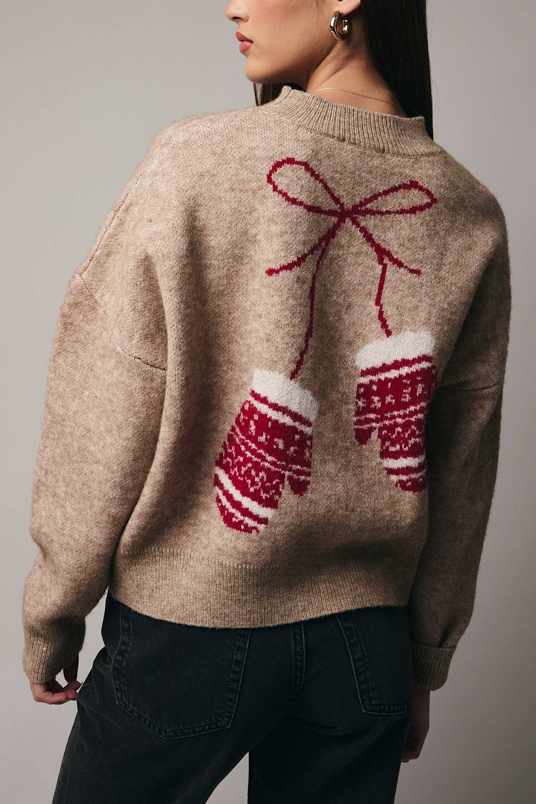 Bundle up in charm with The Mocha Mittens Sweater, a playful graphic pullover designed to bring joy to your winter wardrobe. Featuring a cozy mittens graphic across the front and crafted in a rich mocha knit, this sweater channels all the warm, nostalgic vibes of snow days, hot cocoa, and fireside lounging.