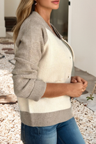 Chic, cozy, and effortlessly versatile — meet The Ivory Divide Cardigan, your new winter-weather staple. This two-tone colorblock knit features a soft ribbed texture, a classic round neckline, and a button-front design that makes layering a breeze.