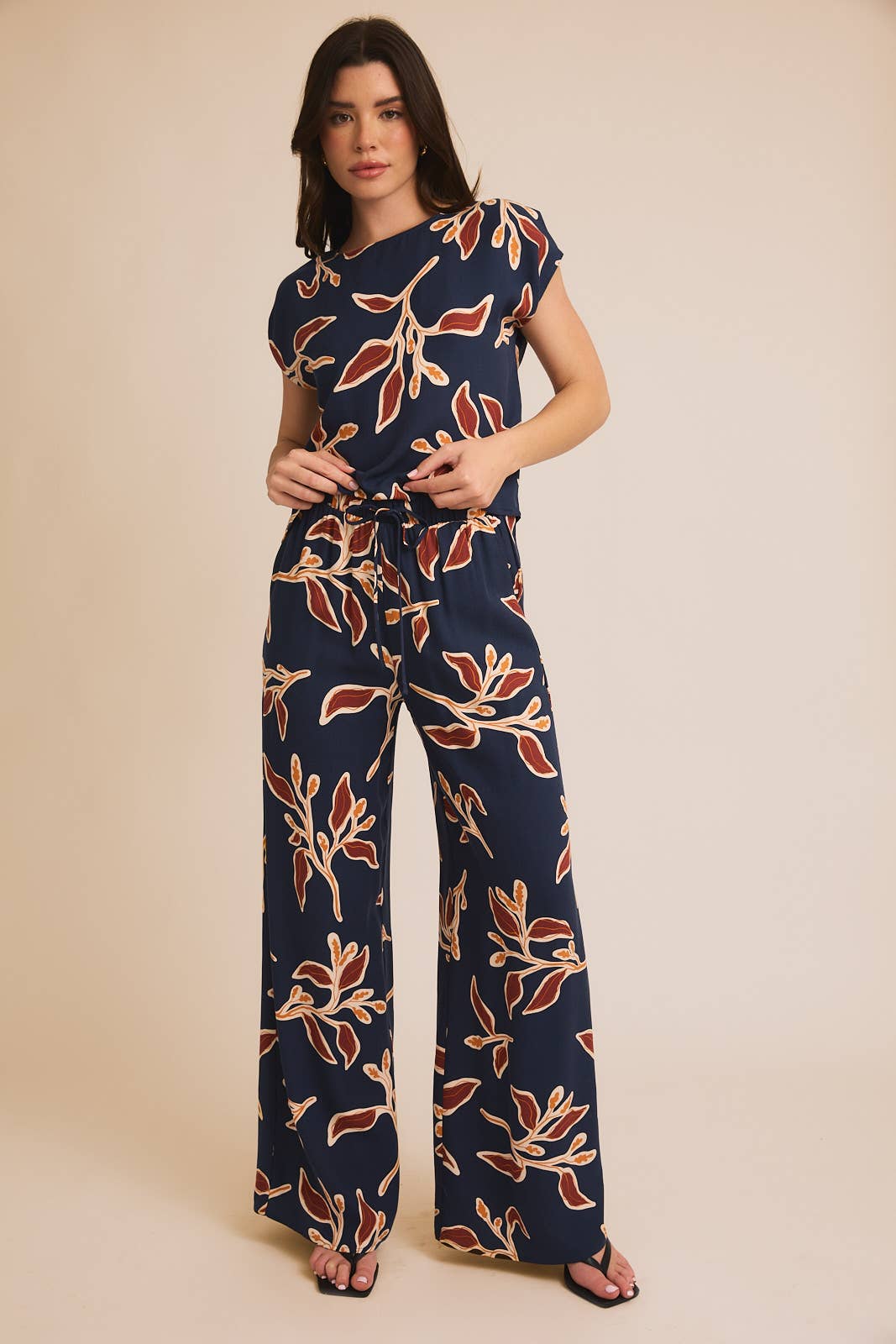 Sway into summer with our Botanic Breeze Pants! These navy-based beauties feature a playful floral print that dances with every step. The breezy wide-leg silhouette offers maximum comfort while keeping you fashion-forward. Perfect for beach strolls, brunches, or wherever the warm weather takes you!
