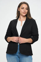 This classic blazer adds a little texture to stand out on its own. It has one functioning button and a little stretch. Perfectly paired with dress pants for a classy office vibe, or jeans for a more casual style!