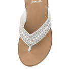 Need a playful pop for your outfit this summer, try the Debra flip flops. Features straps with half-pearl embellishments that are perfect for adding a little extra to your outfit. Low-profile sandal is modern style with built in comfort footbed.