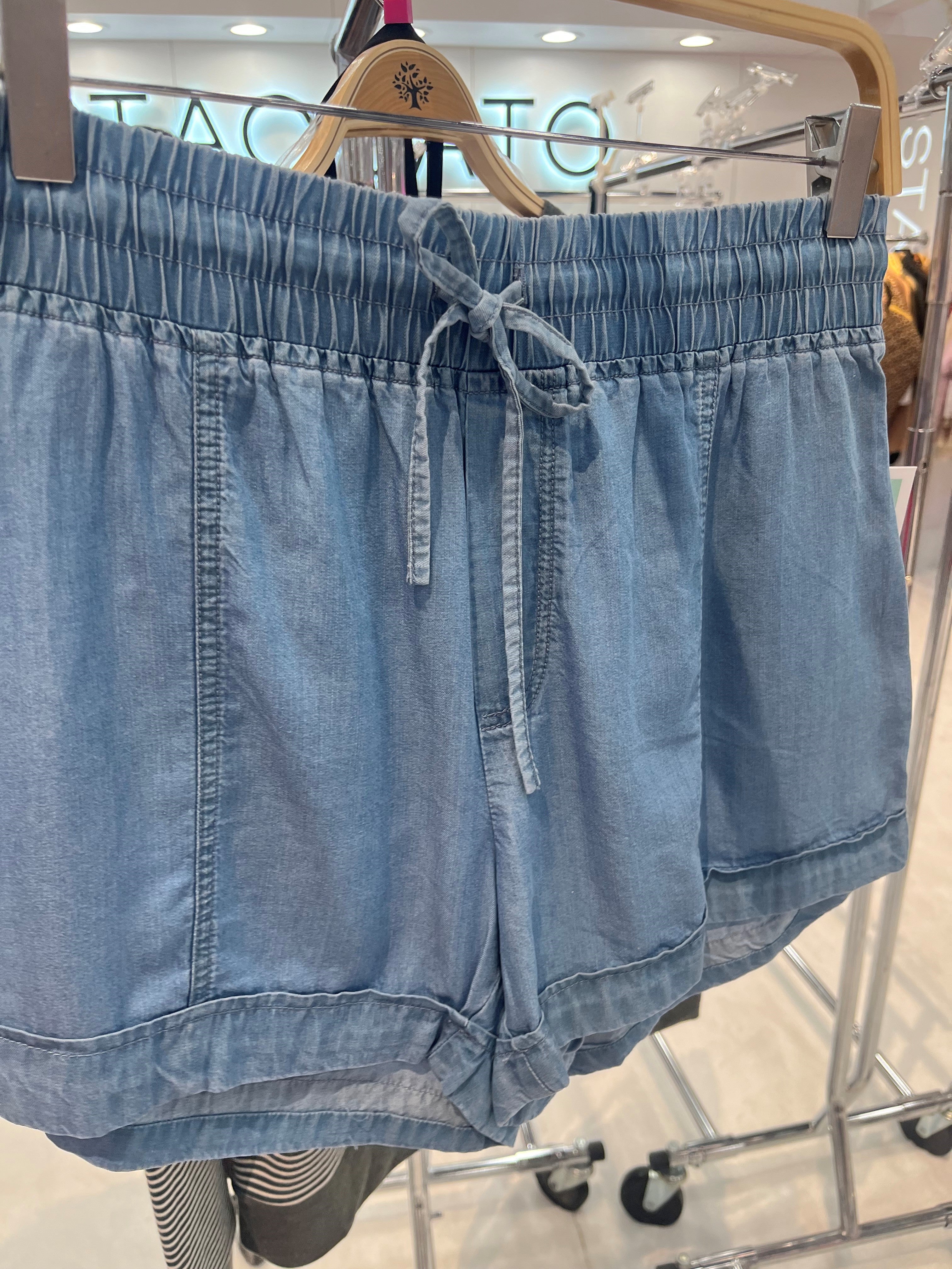 Coastal vibes are captured in these versatile drawstring shorts. Demin washed, light weight shorts feature an elastic waistband and pockets.