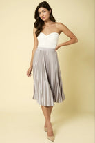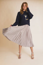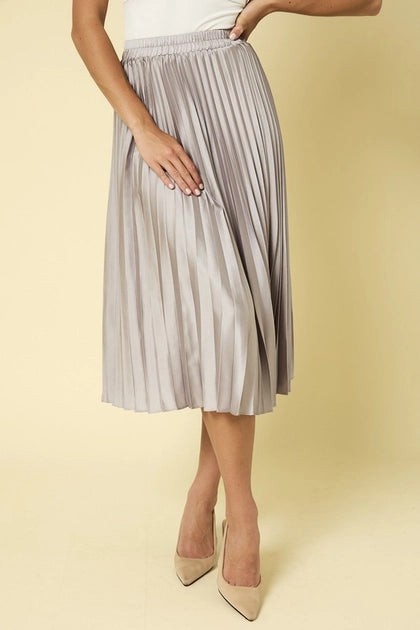 Indulge in luxury with our Sunburst Pleated Satin Skirt. Crafted from high-quality satin, this timeless piece features elegant pleats that add texture and movement to your outfit. Elevate your style with this sophisticated and exclusive skirt, perfect for any occasion.