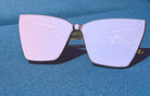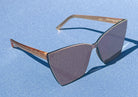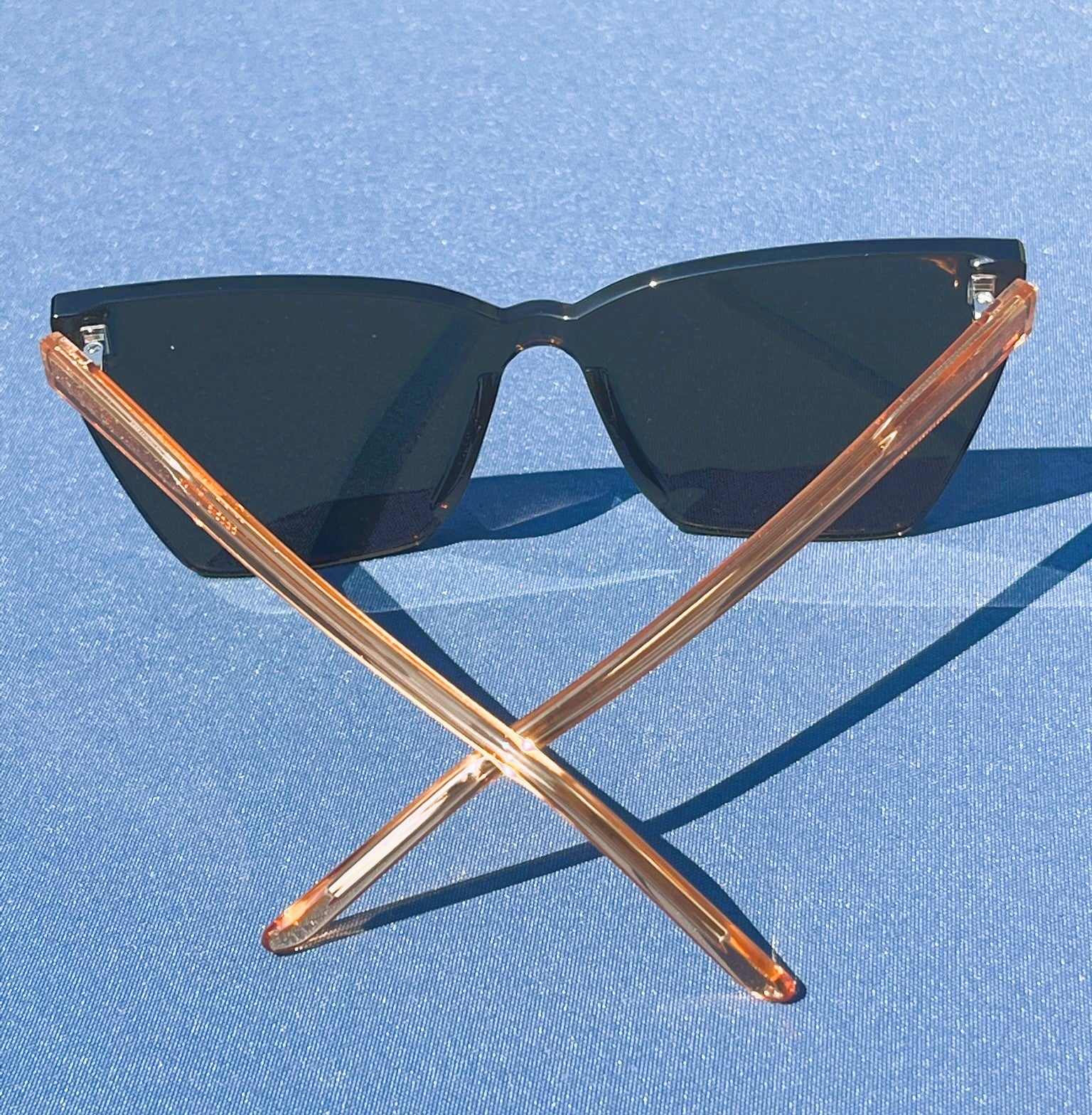 The Goldie is an instant dose of edgy cool energy vibes. It is frameless and seamless but has the classic cat eye shape. With a unique apricot color this shade will have heads turning.