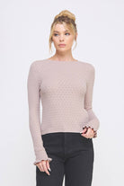 Let your daydreams take flight in our Chic Reverie Knit Top! With romantic ruffle sleeves and a fine gauge pointelle knit, this top is the perfect addition to your wardrobe. It's sure to be a hit with both dreamers and fashionistas alike.