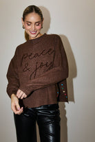 Wrap yourself in warmth and good vibes with The Peace & Joy Sweater. Featuring a soft brown knit and elegant cursive lettering across the front, this sweater is the perfect blend of cozy and meaningful — made for slow mornings, joyful moments, and everything this season stands for.