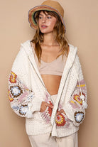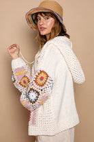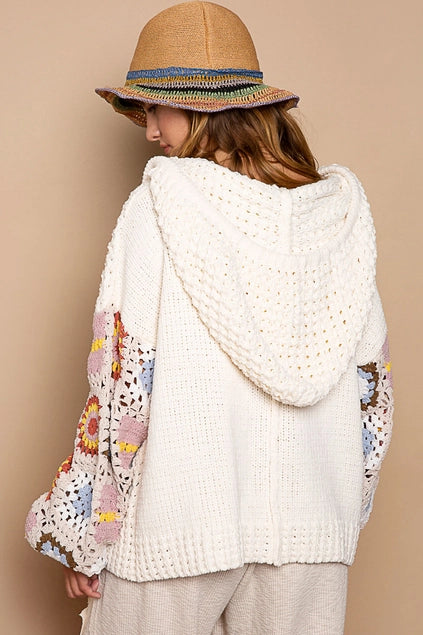 Stay cozy and stylish with our Raglan Granny Square Pattern Sweater. Embrace retro vibes with its pointed pocket and balloon sleeves. The hood adds an extra touch of comfort, and the raglan granny pattern is a playful twist. Keep your wardrobe game strong with this retro fun sweater.