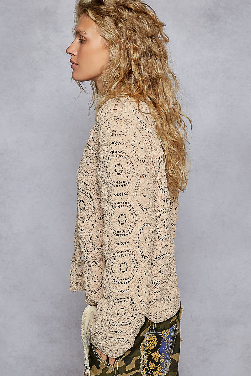 Drift into effortless summer style with the Seabreeze Sweater, a dreamy blend of coastal charm and comfort. The round neckline offers a classic, relaxed fit, while the long sleeves provide the right amount of coverage for breezy and sunny days. Crafted from 100% cotton, this crochet piece is perfect for sun-soaked days and crisp seaside evenings.