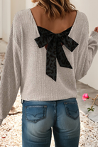 Add a touch of playful sophistication to your fall wardrobe with The Savannah Bow Back Pullover. This taupe knit combines timeless charm with a hint of wild flair, featuring a statement leopard-print bow tie detail at the back. The relaxed silhouette and soft, lightweight fabric make it perfect for everything from brunch with friends to cozy evenings out.