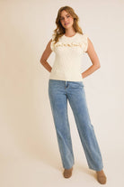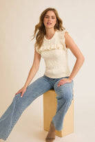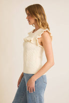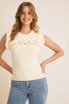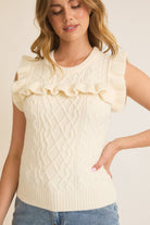 Get ready to fall for our Cabled Cascade Knit Top! This versatile piece features a charming cable knit pattern and playful ruffle sleeves for a touch of elegance. With its soft, timeless style, you can pair it with jeans for a casual look or dress it up with a skirt or dress pants. A perfect staple for every wardrobe!