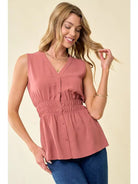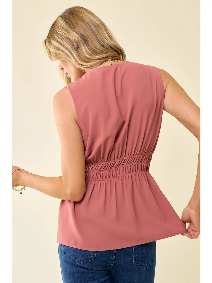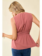 Cinched Waist Button Front Blouse - Spice