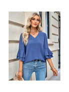 Relaxed Ruffled Sleeved V-Neck - Haze Blue