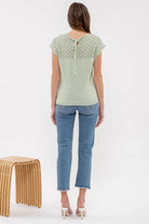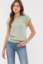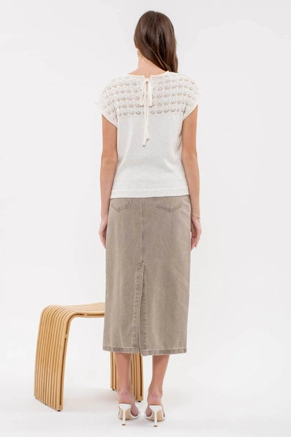 This timeless sweater features eyelet details around the neckline and sleeves, tie back and is super soft. Pair with a maxi skirt, or slacks for a dressier style or pair with jeans for a causal party. Available in multiple colors.