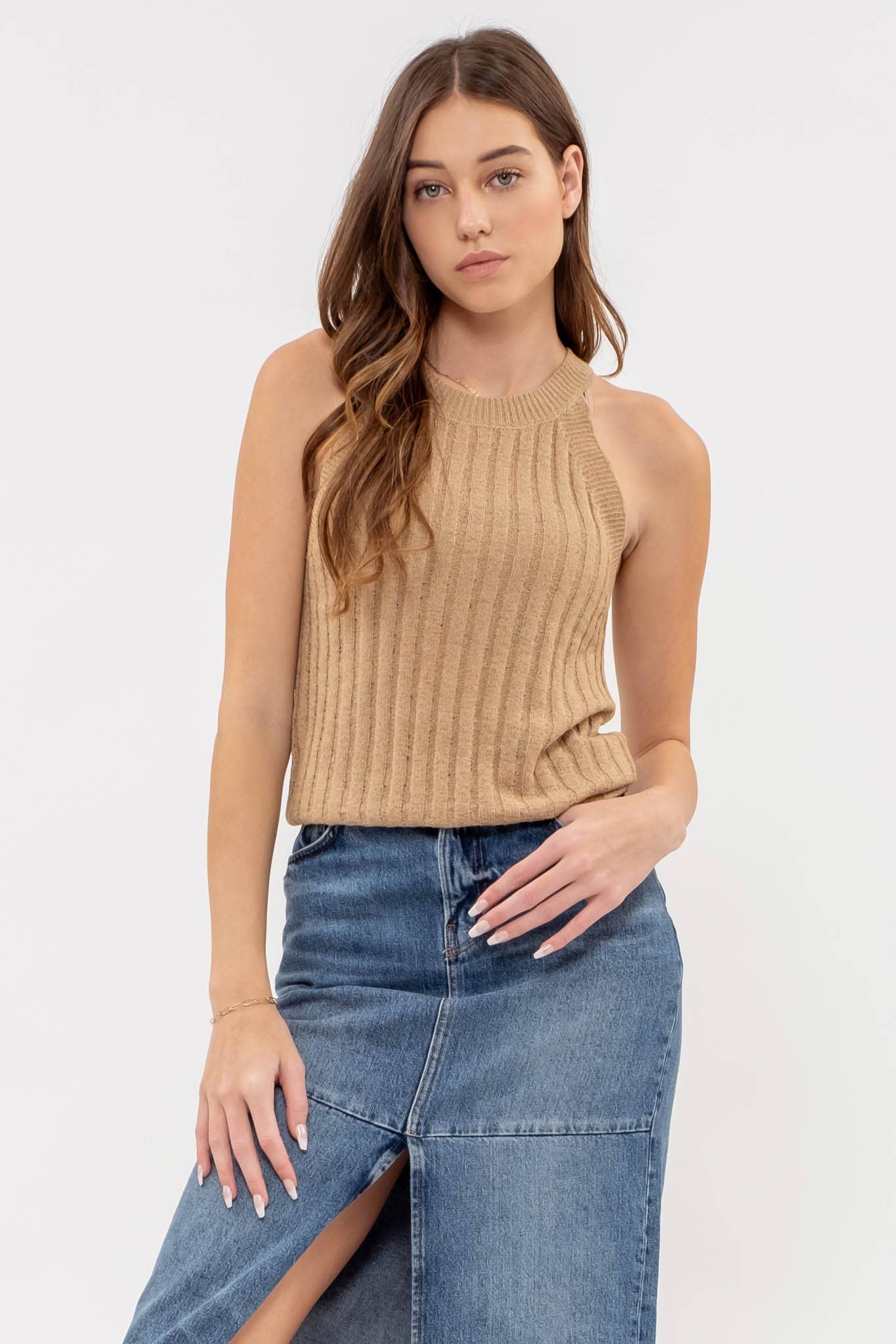 Turn heads with our Coastal Halter Tank! This crochet knit tank features a halter neckline and a classic style that seamlessly transitions from casual to work to a night out. A perfect staple for any wardrobe!