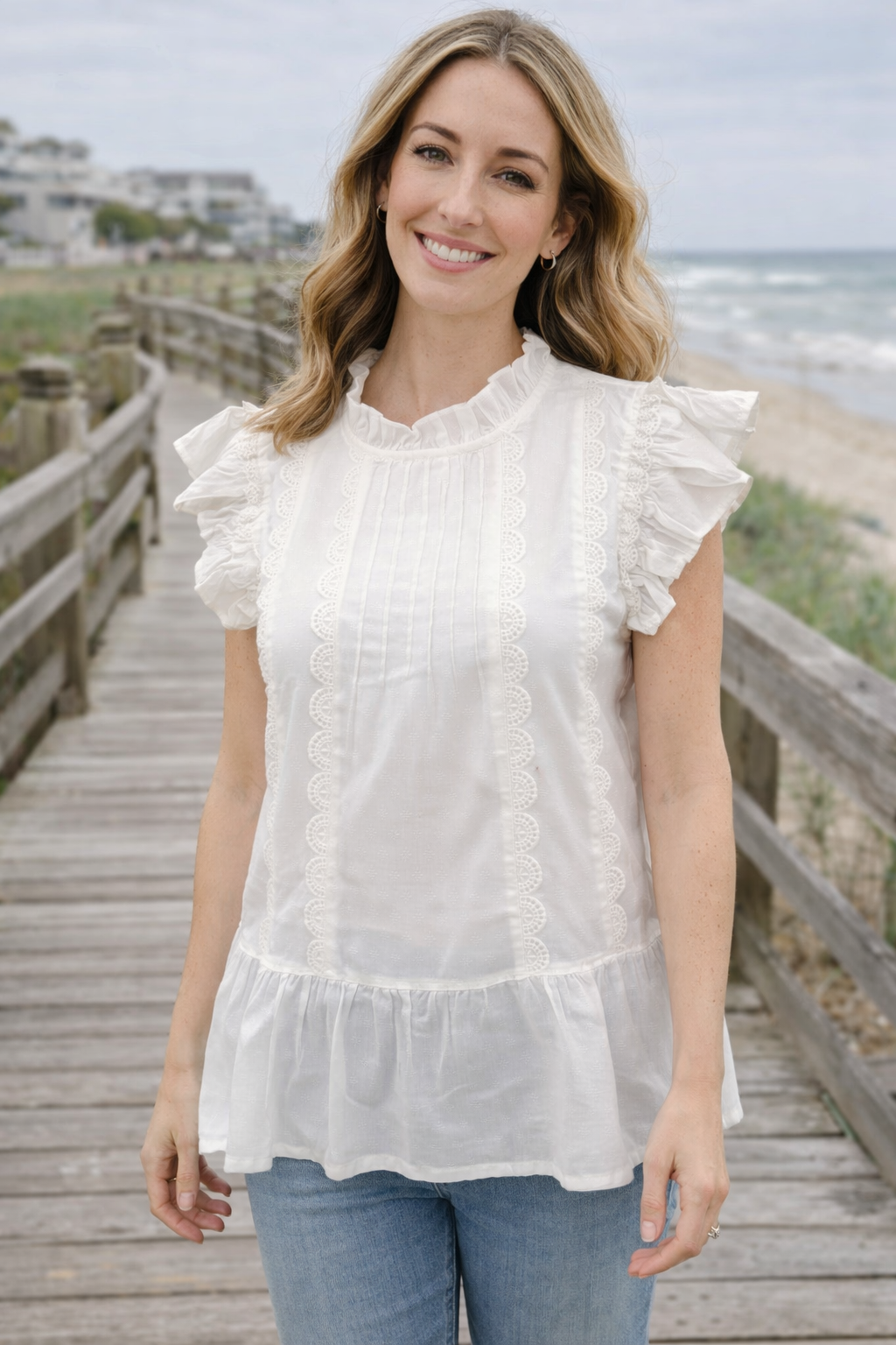 White Ruffle Sleeve Top