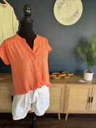 Stay stylish and comfortable this summer with our Roll Sleeve Shirt. Designed with a flattering v-neckline and playful rolled sleeves, this button down shirt is perfect for any warm weather occasion. Have some fun while looking effortlessly chic!