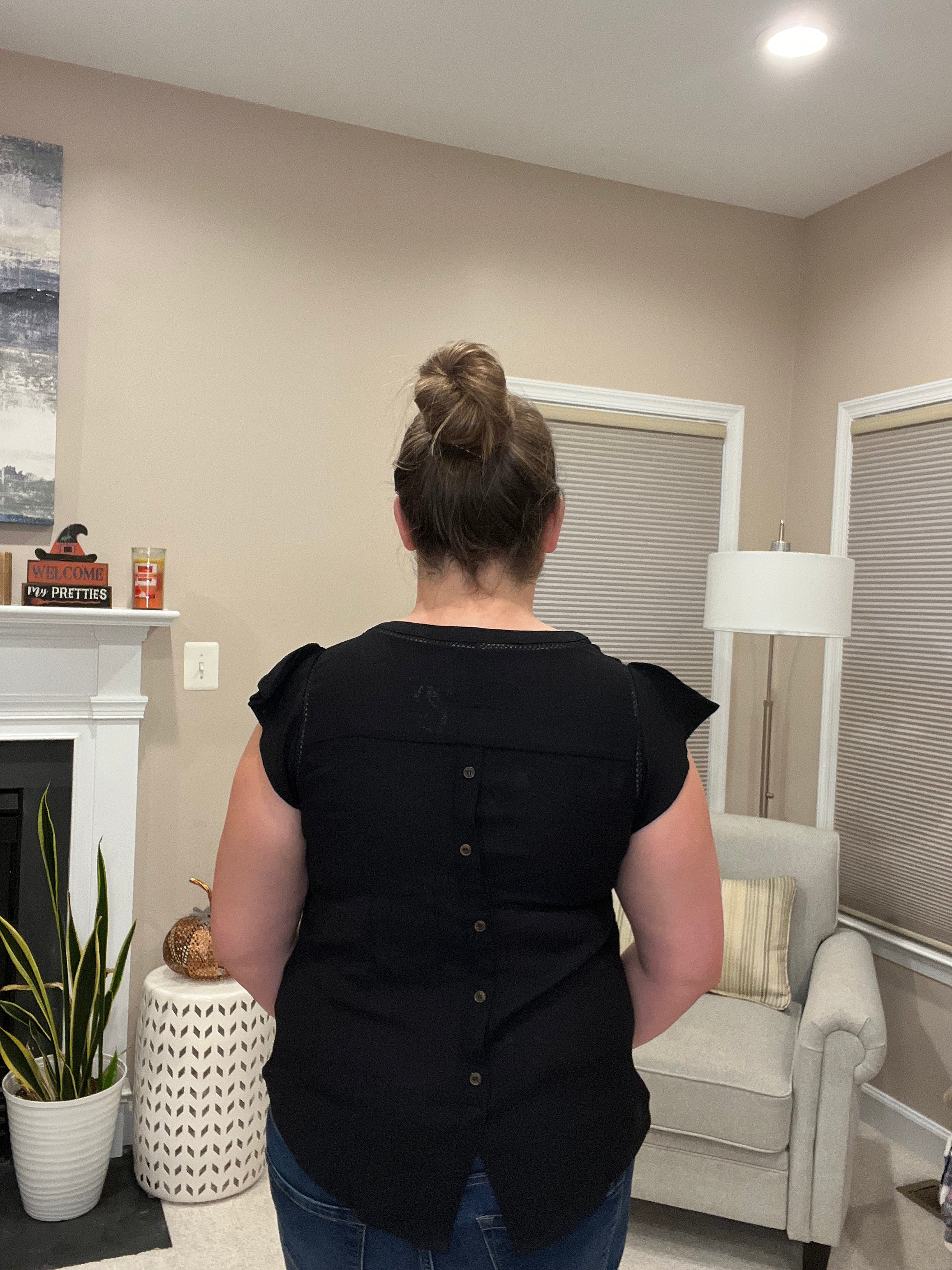Best all around top for any occasion and weather. This top feature a tulip sleeve and detailing on the sleeves. Best part is the added button details on the back. Great for layering in the cooler days but perfect for warmer spring/summer days.