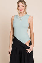 Slim Fitting Scoop Neck Bodysuit - Frosted Sage