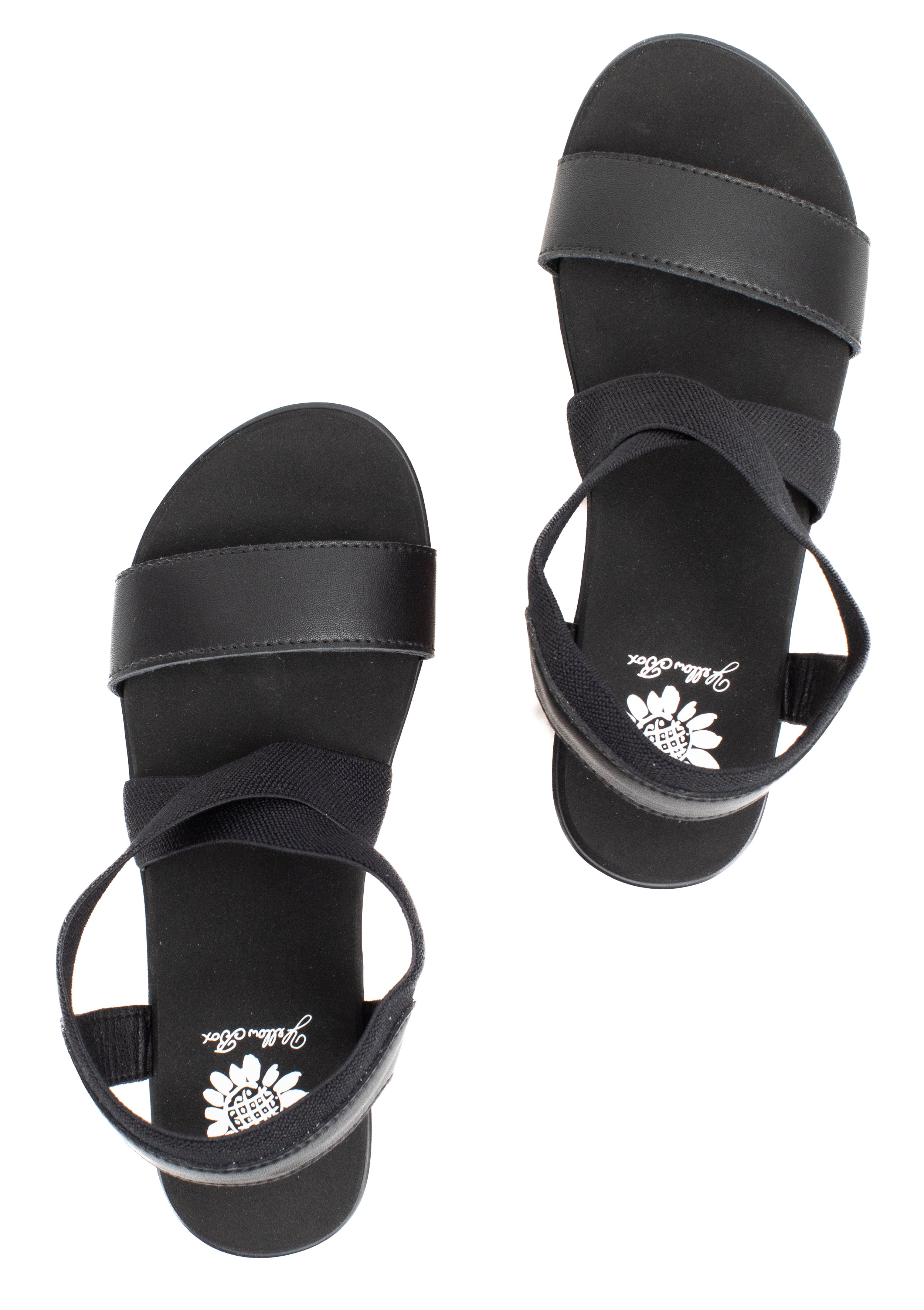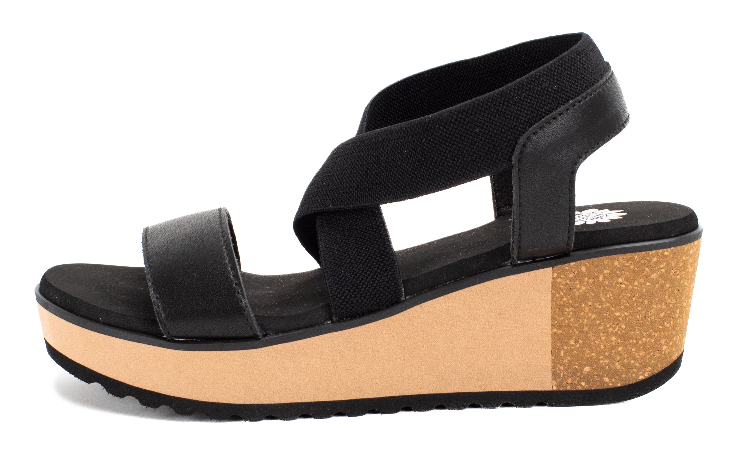 Classic wedge with ultimate comfort featuring elastic cross straps, lightweight color-block wedge with Yellow Box's signature EVA footbed. Heel height is 2.5" with the platform sitting at 1.25" height.