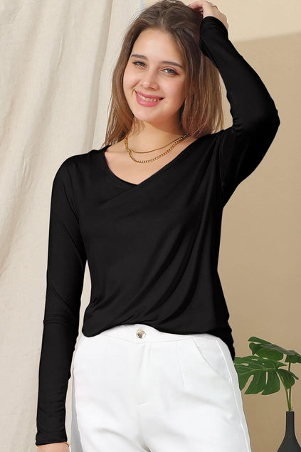 Round Neck Long Sleeve Shirt - Black