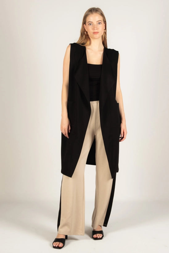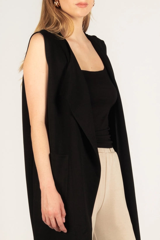 We found the perfect long vest for this fall/winter that gives you comfort and style all in one. This vest is super soft, has stretch and is flattering on every silhouette. Great transitional piece for the fall and great for winter by pairing this with a long sleeve shirt or sweater to keep you warm.