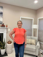 Need a pop of color? This blouse is bright, cheerful and features amazing details on the sleeves and shoulder. Perfect piece to add to your wardrobe that is great for any season. Perfect for spring/summer as is or great layering piece with a cardigan or coat for the cooler seasons.